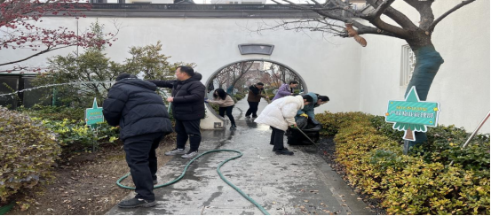 盡管天氣寒冷,但大家的熱情絲毫未減。經(jīng)過(guò)一下午的努力,桃花源景觀展示區(qū)面貌煥然一新,呈現(xiàn)出更加整潔、美麗的面貌。