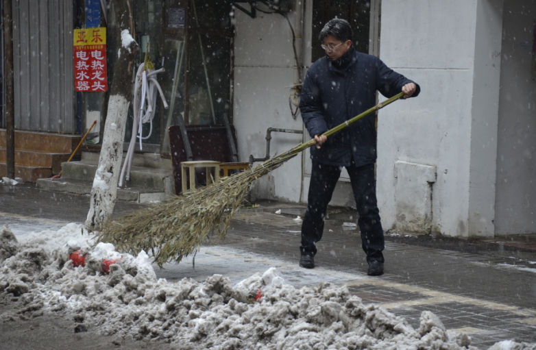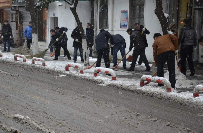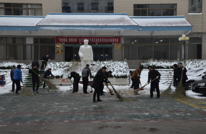在紀(jì)委書記王獻(xiàn)忠、總經(jīng)理助理朱濤的帶領(lǐng)下,廣大干部職工紛紛拿起鐵鍬、掃帚等工具,不畏嚴(yán)寒,你鏟我掃,相互配合,一點點地將積雪和冰層鏟起清除。盡管大家的臉都凍得通紅通紅,但手中的掃雪工具卻不停地?fù)]舞著,忙得渾身是汗,在歡聲笑語中掃出了暢通的大道,受到過往市民的紛紛稱贊。
