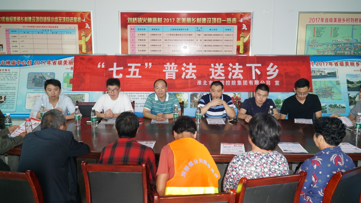 9月14日上午,淮北市建投集團(tuán)“七五普法,送法下鄉(xiāng)”活動(dòng)小組,來到濉溪縣劉橋鎮(zhèn)火神廟村,深入開展法律扶貧活動(dòng),為困難群眾送去法律宣傳,現(xiàn)場(chǎng)發(fā)放宣傳資料。