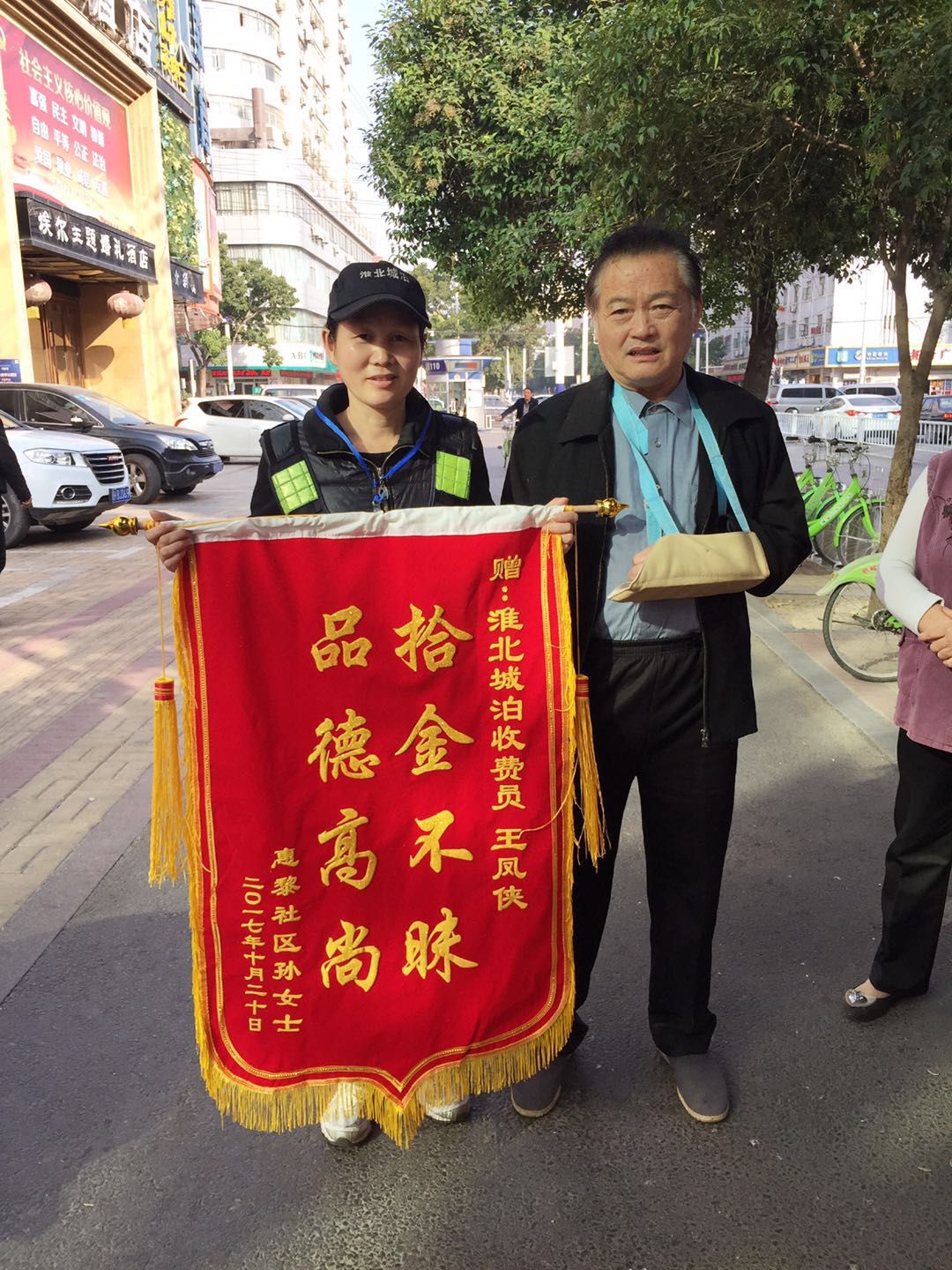導(dǎo)語(yǔ):10月31日上午,失主王乃志向淮北城市泊車管理有限公司收費(fèi)員王鳳俠贈(zèng)送錦旗,衷心感謝!收費(fèi)員王鳳俠拾金不昧,我被這位普通的收費(fèi)員高尚的品質(zhì)深深感動(dòng)。