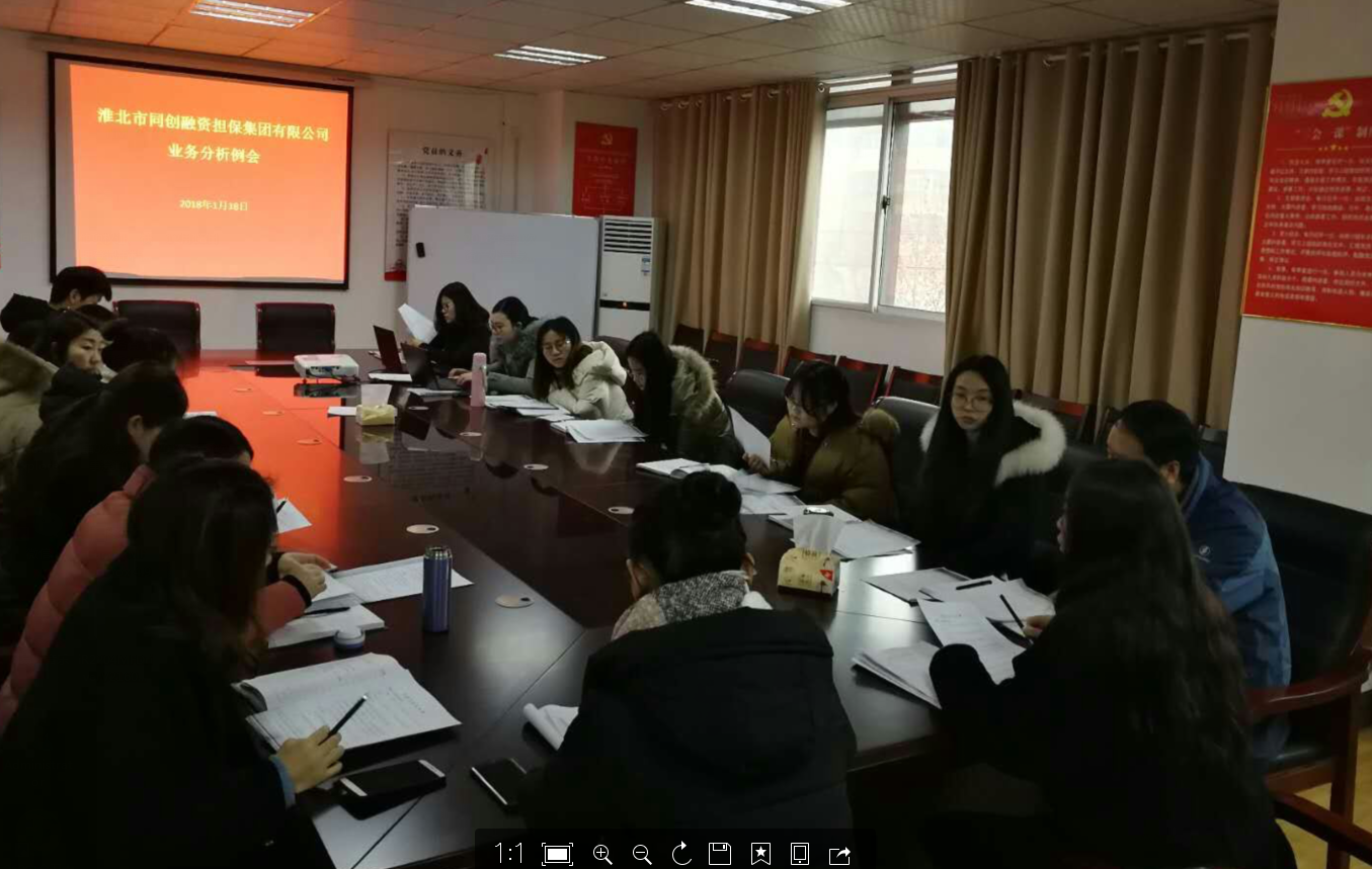 1月18日,市同創(chuàng)融資擔(dān)保集團業(yè)務(wù)部召開部門周例會,會議由業(yè)務(wù)一部部長李壯志、副部長徐欣主持。會議學(xué)習(xí)研究了《小微企業(yè)比例再擔(dān)保合作協(xié)議》和《2017年度全省融資擔(dān)保行業(yè)發(fā)展與監(jiān)管工作暨業(yè)務(wù)培訓(xùn)會議》相關(guān)內(nèi)容。