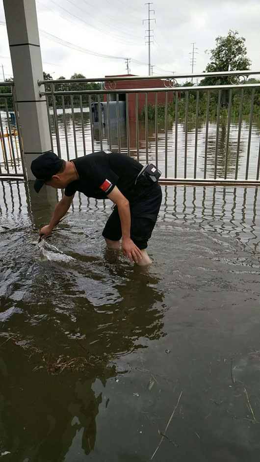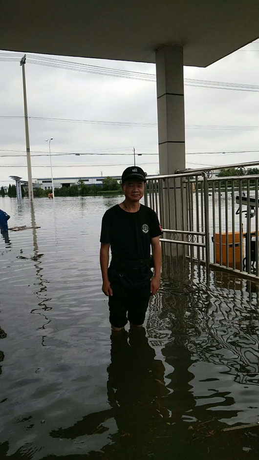 在洪澇期間,斷水?dāng)嚯娗闆r下,他們始終堅守工作崗位六天六夜,認(rèn)真履行保衛(wèi)職責(zé),開展生活自救,危急時刻,不懼危險,無畏艱難,積極幫助服務(wù)單位轉(zhuǎn)移車間各種精密儀器設(shè)備,為客戶單位挽回重大經(jīng)濟(jì)損失,積極引導(dǎo)員工疏散,確保了廠區(qū)員工的人身安全。