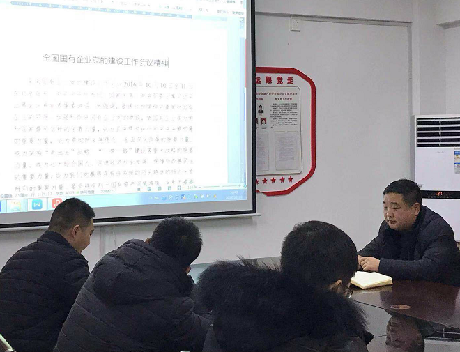 2018年12月29日下午,房地產(chǎn)公司召開支部學(xué)習(xí)會,學(xué)習(xí)傳達(dá)全國全省國有企業(yè)黨的建設(shè)工作會議精神。